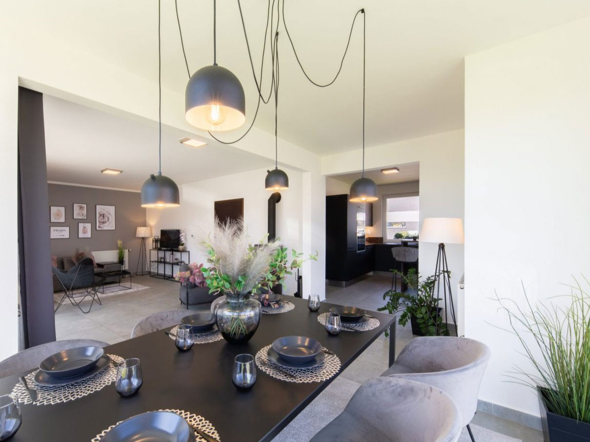 Tento dům jsme prostě nemohli pojmenovat jinak. Romance je ukázkou umné kombinace klasické architektury a moderního nadčasového designu. Její přívětivou tvář rámuje sedlová střecha s vikýřem a podtrhují originálně řešené balkony. Dům vás ohromí svou otevřeností. Doslova na každém kroku je v něm patrné úzké propojení okolí s interiérem. Ať už procházíte na terasu, díváte se ven skrz prosklené stěny, nebo stoupáte po otevřené galerii do prvního patra, vždy vnímáte světlost a vzdušnost prostoru.